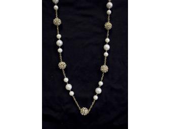 You'll sparkle in this 36"-long gold-toned necklace with Cubic Zirconium spheres interspersed with various sized pearls. The lobster-claw clasp with a generous extension chain allows this piece to be wrapped around the neck twice or worn as one long and glorious strand.