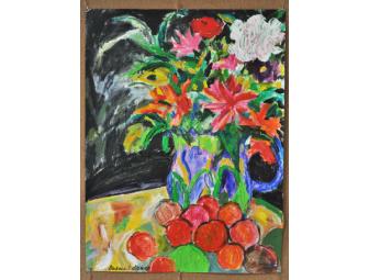 The vibrant and intense color, a hallmark of Ms. Lipman's paintings, is probably the most obvious experience of this original painting titled, "Spring Bouquet." The more subtle colors within the piece continue to excite after first glance. This piece measures 18" X 24" and is unmounted and unframed.