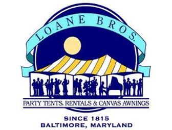 A 20' X 20' white frame tent including standard installation with detachable sides and perimeter lights will be provided for your home party or event. Loane Bros. has a complete line of accessories available and is your one-stop party shop.