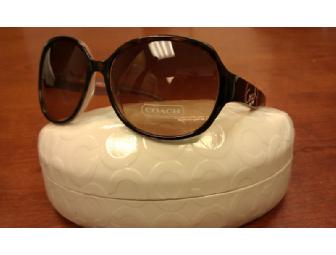 Tortoise-colored, round, oversized frames from Coach. They have quality Plano sunglass lenses that meet or exceed FDA requirements for UV protection and impact resistance. Winner may have prescription lenses made at additional charge. Wilmer Optical of Johns Hopkins has six locations to serve your eyewear needs.