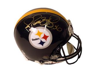 Jerome Bettis has used his potent power running game to propel the Pittsburgh Steelers victory in Super Bowl XL. Bettis, one of the games greatest running backs, currently ranks 5th All-time with over 13,000 career rushing yards. This authentic Steelers helmet has been autographed by Jerome Bettis. A Certificate of Authenticity is included.