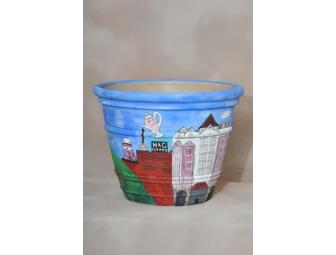 What a fantastic addition to any porch or sunroom! Each fourth grade student painted a Roanoke landmark and signed their name on a background created by NCS Art Teacher, Susanna Quinn. You'll find the Mill Mountain Star, the Dr. Pepper Sign, the Texas Tavern and much more on this large planter pot. Guaranteed to give years of enjoyment, it holds special memories of your child's lower school days at NCS in Roanoke. The pot measures 2ft high and 2ft wide at the top.