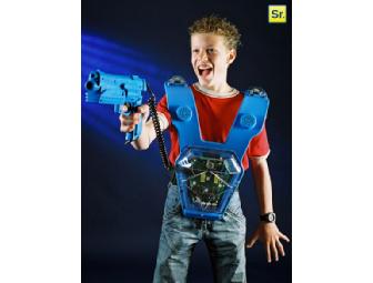 Enter into a world where you can suit up in ultra high-tech laser sensored vests, move through column forests and maze-like corridors to zap opponents. It is action-packed game which combines the ever-so-popular games of hide-and-go-seek, tag, and capture-the-flag with state-of-the-art interactive computer and laser. Includes four passes. Each pass is good for one game of laser tag. www.q-zar.com