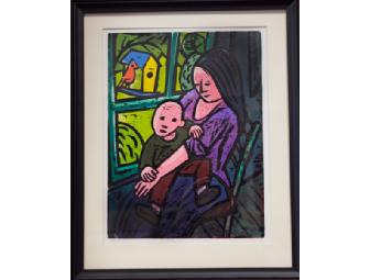 A peaceful mother and child being observed by the sweet bird in the tree. This colorful and totally enchanting print, matted and framed, measures 17" X 22". Mr. Donovan is a highly regarded artist whose artworks are in numerous public and private collections including the National Gallery of Art, The Smithsonian American Art Museum, and The Baltimore Museum of Art, among others.
