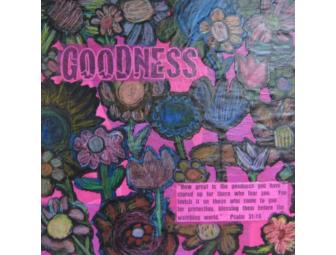 Each student in Mrs. Dueck's class created a flower which has been included in this one-of-a-kind art canvas depicting GOODNESS, October's spiritual theme.