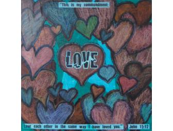Each student in Miss Widman's class created a part of this one-of-a-kind art canvas depicting LOVE, April's spiritual theme.