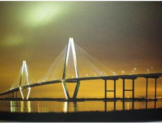 Photograph of Ravenel Bridge at night, mounted on canvas.