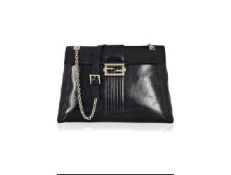 Fendi’s black patent-leather shoulder bag with a gold logo clasp is an investment piece that you will love forever.