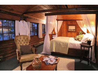 The winning bidder receives a gift certificate good for up to $350 towards a one night stay in a waterside cabin with wood burning fireplace and hot tub access and dinner for two!