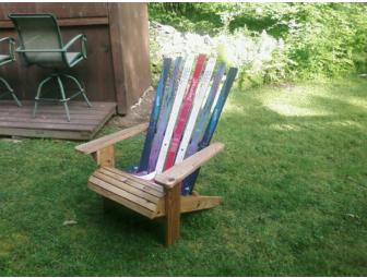 Custom-built Adirondack style chair made out of cedar deck boards and old skis. Buyer has the option of supplying personal skis - five skis (not five pair) needed or donor will provide all supplies. Builder is the current chair of the UMAA Board of Directors.