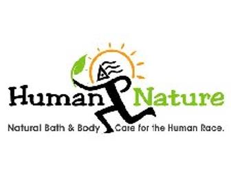 $20 gift certificarte, good for any product on the web site. Human Nature began as Pet Works of Maine, offering natural dog grooming products. Before long requests came in for "people' or "human" soaps, lotions, balms, etc. and Human Nature was born. Products also include soy candles and a few other natural products so the line offers something for everyone.