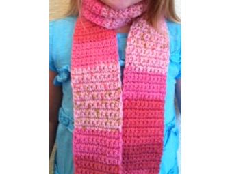 Girls hand crocheted scarf in pink multi yarn.
