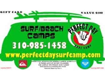 $100 gift certificate for Perfect Day Surf Camp, sponsored by Roxy and Quicksilver. Use it towards summer camp, mommy & me lessons or even adult surf lessons. Located by Parking Lot 9 by Annenberg Beach House.