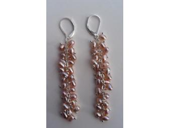 Sterling Silver Long Pearl Cluster Earrings: Designed by Marissa Alperin