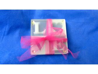 Set of four classic etched glass LOVE Coasters: the perfect gift for that someone special!