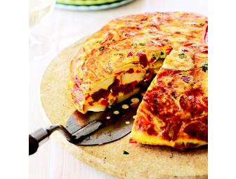 No doubt about it, the Tortilla Espanola or Spanish Omelet is the most commonly served dish in Spain. It is also called Tortilla de Patata or Potato Omelet. Bars and cafés serve it as a tapa or appetizer, but it is often served as a light dinner in Spanish homes. Because it is easy to transport, the Spanish make bocadillos or sandwiches by placing a piece between two pieces of a baguette. There are lots of variations of tortillas or omelets. lets explore a few together.