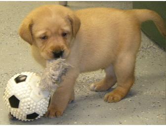 "Coach," our English Labrador Retriever Puppy is full of love and comes with three-months of obedience training from Winston Land Kennels, as well as physical examination, puppy vaccinations (6, 9, 12 & 16 weeks) and six months supply of heartworm preventative from mobile veterinarian/CCHS parent Dr. Alexis Sage. Coach has AKC Limited Registration. Winston Land dogs are either champion sired or come from reputable champion breeding bloodlines, proving quality, well tempered pets that live up to meet the lab breed standards. Coach has his first shots and has been wormed completely every 10 days. Coach was born in January 2011 and would make a great addition to your family!