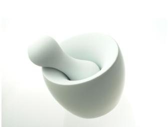 Porcelain Mortar and Pestle. The profile shape of the pestle is coincidental to the inner shape of the mortar, so it produces a "full contact" effect, which is fun to hold, and efficient in it's grinding function.