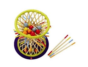 Choose a color, then try to keep your balls in the basket as you remove your sticks one by one. Last color remaining in the basket wins.
