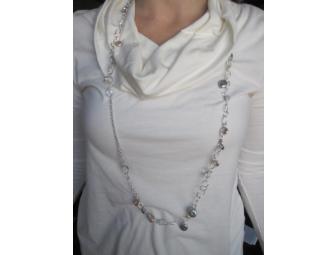 This gorgeous, opera-length necklace is fashioned from large, free-formed Baroque pearls, treasured for their unique and irregular shapes and colors, as no two are alike. Jewelry designer and Audubon parent Lynn Liberati mixes these pearls with glass beads, silver links, and flower charms, resulting in a truly beautiful, versatile piece—perfect for Spring!