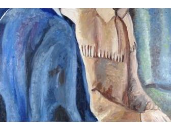 One of 72 segments which comprise a "Texas-sized" reproduction of the dramatic “Reading of the Texas Declaration of Independence” by artists Charles & Fanny Normann, originally created for the Texas Centennial Celebration in 1936. The painting memorialized the work of the fifty-nine elected delegates at Washington-on-the-Brazos who declared Texas independent from Mexico in 1836. The image was divided into 72 segments, then numerous local artists, both professional & amateur, were assigned a segment of the image to paint on a 2 X 3 ft. panel. These segments were assembled onto an 18 X 24 ft. grid to create an impressive reproduction of the painting, three times its original size. This one-of-a-kind item was unveiled for the 175th anniversary of the signing of the Texas Declaration of Independence.