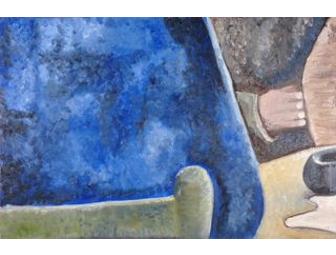 One of 72 segments which comprise a "Texas-sized" reproduction of the dramatic “Reading of the Texas Declaration of Independence” by artists Charles & Fanny Normann, originally created for the Texas Centennial Celebration in 1936. The painting memorialized the work of the fifty-nine elected delegates at Washington-on-the-Brazos who declared Texas independent from Mexico in 1836. The image was divided into 72 segments, then numerous local artists, both professional & amateur, were assigned a segment of the image to paint on a 2 X 3 ft. panel. These segments were assembled onto an 18 X 24 ft. grid to create an impressive reproduction of the painting, three times its original size. This one-of-a-kind item was unveiled for the 175th anniversary of the signing of the Texas Declaration of Independence.