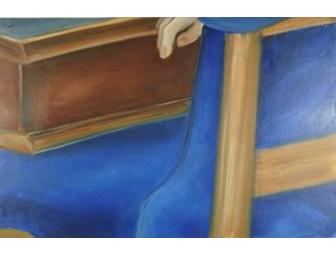 One of 72 segments which comprise a "Texas-sized" reproduction of the dramatic “Reading of the Texas Declaration of Independence” by artists Charles & Fanny Normann, originally created for the Texas Centennial Celebration in 1936. The painting memorialized the work of the fifty-nine elected delegates at Washington-on-the-Brazos who declared Texas independent from Mexico in 1836. The image was divided into 72 segments, then numerous local artists, both professional & amateur, were assigned a segment of the image to paint on a 2 X 3 ft. panel. These segments were assembled onto an 18 X 24 ft. grid to create an impressive reproduction of the painting, three times its original size. This one-of-a-kind item was unveiled for the 175th anniversary of the signing of the Texas Declaration of Independence.