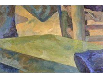One of 72 segments which comprise a "Texas-sized" reproduction of the dramatic “Reading of the Texas Declaration of Independence” by artists Charles & Fanny Normann, originally created for the Texas Centennial Celebration in 1936. The painting memorialized the work of the fifty-nine elected delegates at Washington-on-the-Brazos who declared Texas independent from Mexico in 1836. The image was divided into 72 segments, then numerous local artists, both professional & amateur, were assigned a segment of the image to paint on a 2 X 3 ft. panel. These segments were assembled onto an 18 X 24 ft. grid to create an impressive reproduction of the painting, three times its original size. This one-of-a-kind item was unveiled for the 175th anniversary of the signing of the Texas Declaration of Independence.