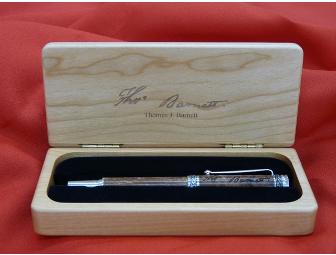 A master craftsman has created a unique series of high quality, ballpoint pens.  Each pen is uniquely hand crafted from the La Bahia Pecan tree, located within the Park and over 180 years old, a living witness to the events of March 1836. Each pen bears the laser engraved signature of one of the signers of the Texas Declaration of Independence.  Each pen comes with a 175th Anniversary commemorative case, which also bears the name and signature of the delegate from the Convention.