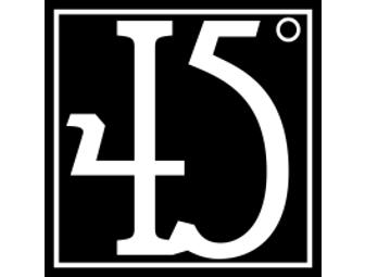 45° has generously donated a $50 gift certificate toward custom picture framing. Expires 12/31/11