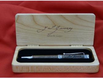 A master craftsman has created a unique series of high quality, ballpoint pens. Each pen is uniquely hand crafted from the La Bahia Pecan tree, located within the Park and over 180 years old, a living witness to the events of March 1836. Each pen bears the laser engraved signature of one of the signers of the Texas Declaration of Independence. Each pen comes with a 175th Anniversary commemorative case, which also bears the name and signature of the delegate from the Convention.