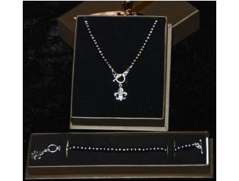 Outstandingly handsome purple pearl fleur de lis necklace and bracelet from Silver Moon Jewelry. What could be a better choice for any Louisiana "material girl" to enjoy, be it for Mardi Gras or LSU Tiger game time- you can't go wrong!