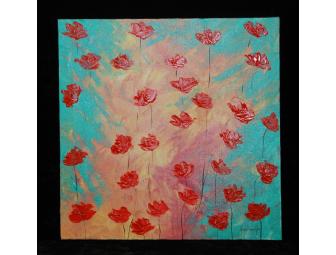 Let this original modern acrylic painting by Uruguayan artist Monica Falini brighten up your walls. "Splash of Red Poppies" is on hand-stretched canvas, hand-made and assembled on stretcher bars.
