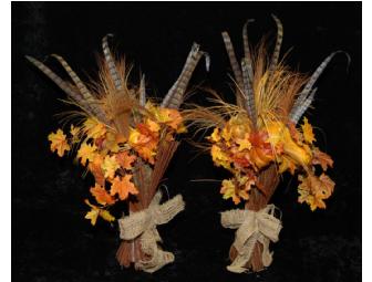Lovely pair of custom made harvest mantle arrangements perfect for festive autumn decorating that can take you all the way through fall!