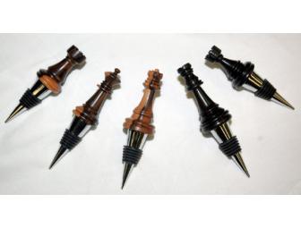 Chess Figure Bottle/Wine Stoppers from Blonde Streaked Ebony Wood hand turned by former Southfield Dad, David Caskey.