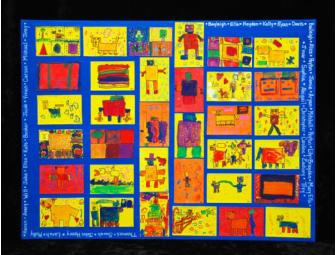 DUDE, like, the first grade got TOTALLY SQUARED with their art. Squares become robots, dogs, houses and more as the first graders give their take on the square. All of the artists' names are printed on the border of the canvas along with the title, Southfield School, and REWIND 2011. Total canvas size: 30 x 40 inches.