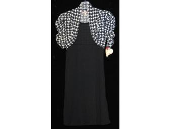 Why every girl needs a black dress!  This is the perfect occasional black dress with attached black and white hounds tooth shrug.  (size 16).