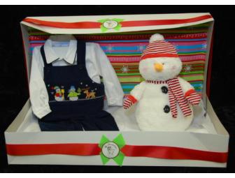 Corduroy longall with snowman smocking. Also included is a 12" plush snowman. (Size 6 months)