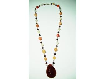 This carnelian necklace is accented with tiny red jasper beadscand wire wrapped using sterling silver.