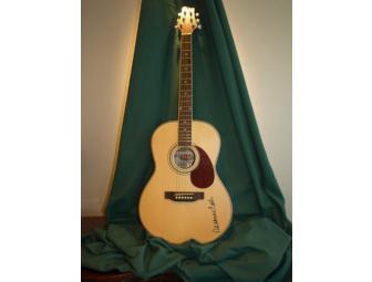 Handmade mahogany and spruce western acoustic guitar signed by Country singer-songwriter Rosanne Cash. Stagg Model SF209/NS