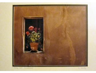 Framed and matted, this lovely photograph by C. Davis will have you believing the sun is shining directly through the window sill into the room.