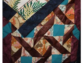 This quilt is made of an intriguing mix of silk, cotton and synthetic fabrics.