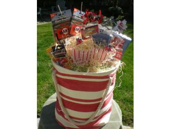 This great red and white striped Tote bag contains all kinds of games, movie tickets and other items to provide many evenings of family fun and entertainment. This collection was provided by Ms. Silverglate's 3rd grade class and consists of: