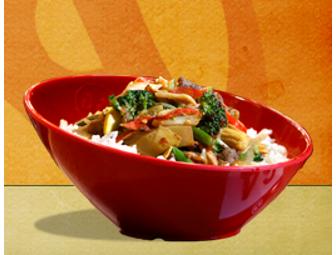 The Genghis Grill Restaurant, a Monoglian Stir Fry, gift card for four (4) Bowls, and redeemable at any Dallas/Ft. Worth location.