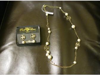 Necklace and earring set. The "Paige" set is a 35 inch necklace and pierced earrings made of genuine Austrian crystals and glass pearls. Perfect if you are looking for glamour and elegance.
