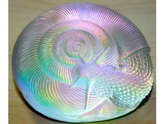 Enjoy the light shining through this unique piece of Robin Lehman glass art. Approximately two inches high, this unique piece will spark conversations and joy for years to come!
