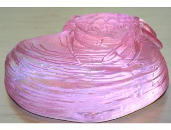 Enjoy the light shining through this unique piece of Robin Lehman glass art. Approximately two inches high, this unique piece will spark conversations and joy for years to come!