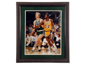 Larry Bird and Magic Johnson Dual Signed 16x20 Framed Photograph