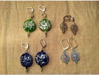 Four pairs of pierced, dangle earrings made by Tina Strafaci, PS 29's Pre-K social worker.