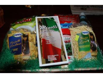 Enjoy an Italian meal at home thanks to Minelli Deli in Niles. Crostini, pasta, sauce, chocolates, cookies and Pelagrino. Just add a bottle of wine and good company for the perfect evening.